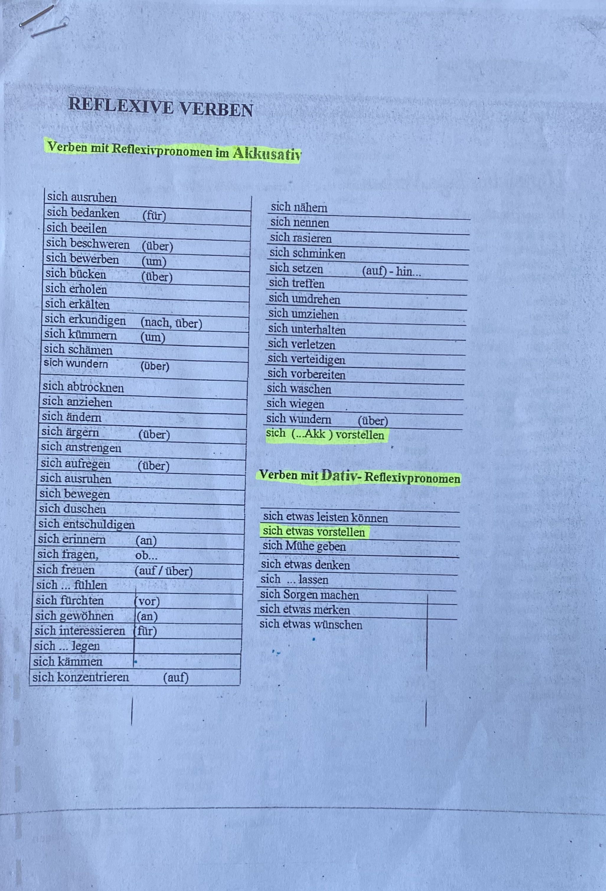 Nomen-Verb-Verbindungen Liste