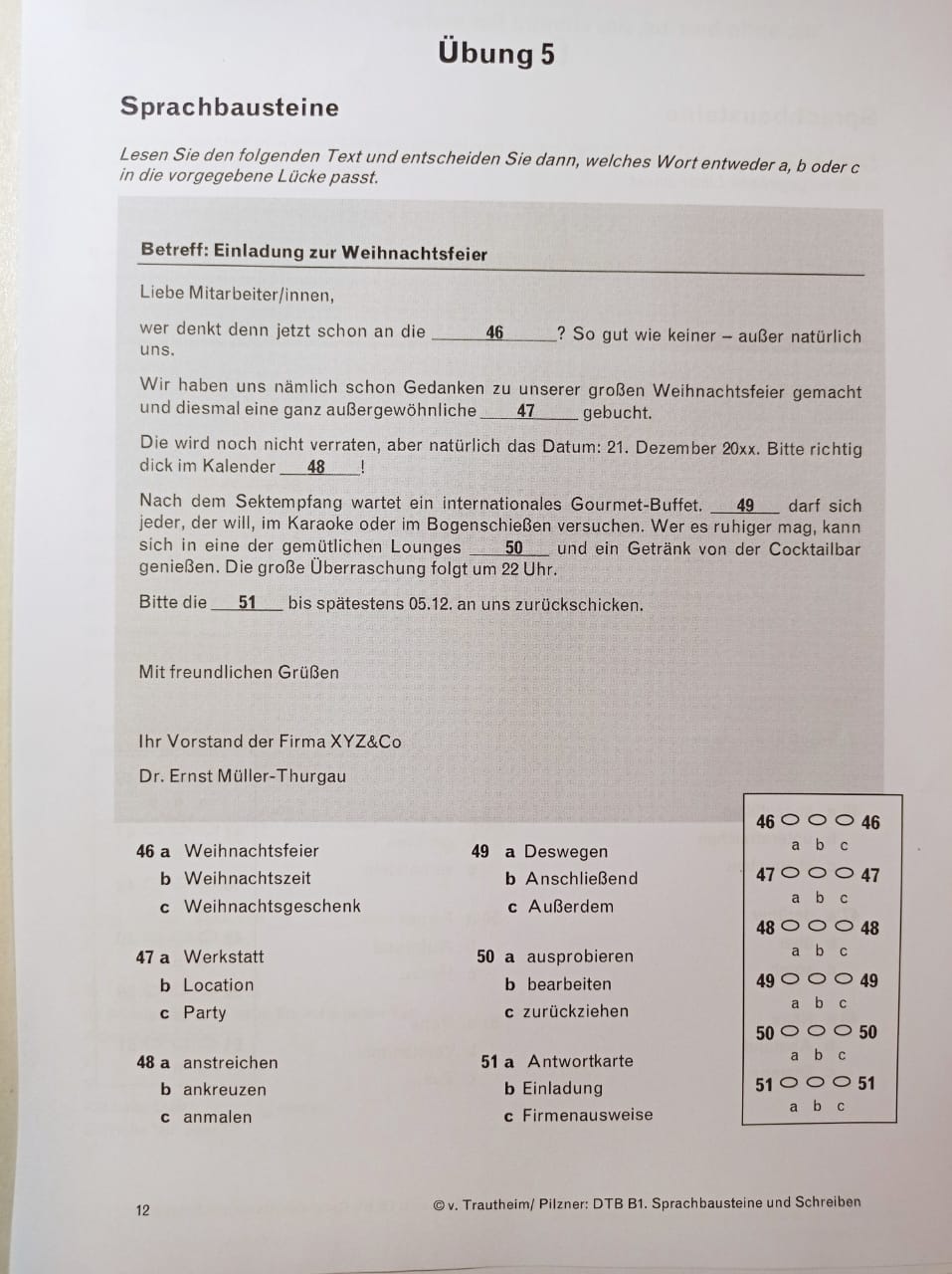 Lesen Sie den folgenden Text und entscheiden Sie dann, welches Wort entweder a, b oder c in die vorgegebene Lücke passt.